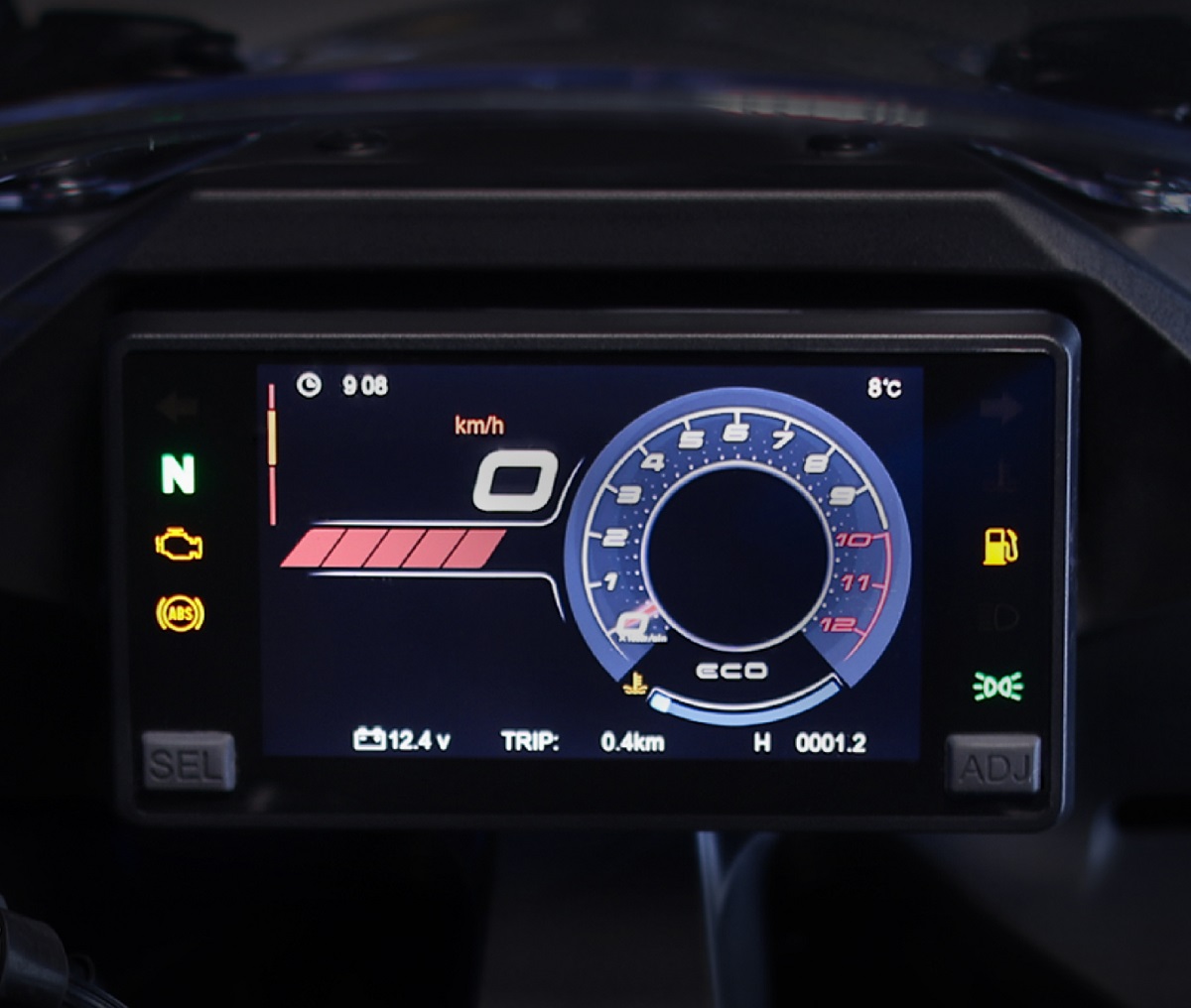 Ο ολοκαίνουργιος πίνακας οργάνων αποτελείται από μια έγχρωμη οθόνη TFT που ρυθμίζει αυτόματα την φωτεινότητα της ανάλογα με τoν φωτισμό του περιβάλλοντος. Υπάρχει επιλογή ανάμεσα σε δυο προγράμματα απεικόνισης (Sport και Eco), που παρουσιάζουν με διαφορετικά γραφικά ένα πολύ μεγάλο πλήθος πληροφοριών, από τις στροφές του κινητήρα, την ταχύτητα κίνησης και την επιλεγμένη σχέση, μέχρι και πληροφορίες από το συνδεδεμένο κινητό τηλέφωνο.
