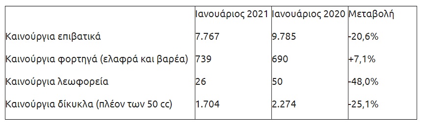 Μεγάλη πτώση 20,6% παρουσιάστηκε τον Ιανουάριο του 2021 και στις πωλήσεις νέων αυτοκινήτων στη χώρα μας.
