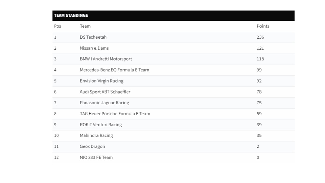 Η DS Automobiles με τις δύο πρώτες θέσεις στις κατατακτήριες δοκιμές, εξασφάλισε την πρώτη σειρά εκκίνησης στον αγώνα με τον Antonio Felix Da Costa και τον Jean-Éric Vergne. Ενώ ο Antonio ήταν τοφαβορί, ο teamate του Jean-Éric έκανε έναν απίστευτο αγώνα, αλλά δυστυχώς απομακρύνθηκε από την κορυφή ύστερα από ένα ατύχημα. Το αποτέλεσμα σήμερα δίνει στον Antonio ένα προβάδισμα 41 πόντων στη βαθμολογία των Οδηγών και στην DS Automobiles ένα προβάδισμα 36 πόντων στη βαθμολογία των Κατασκευαστών, με πέντε ακόμη αγώνες να απομένουν για να ολοκληρωθεί το φετινό Πρωτάθλημα.