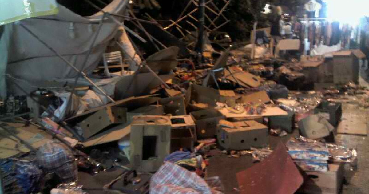 Πριν αποχωρήσουν, τα μέλη της Χρυσής Αυγής αναποδογύρισαν τουλάχιστον ένα πάγκο μικροπωλητών, χωρίς, ευτυχώς να σημειωθεί κάποιος τραυματισμός.