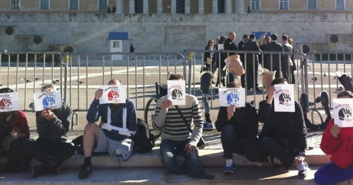 Η διαμαρτυρία πραγματοποιείται με την ευκαιρία της Παγκόσμιας Ημέρας των ανθρώπων με Αναπηρια, σήμερα 3 Δεκεμβρίου.