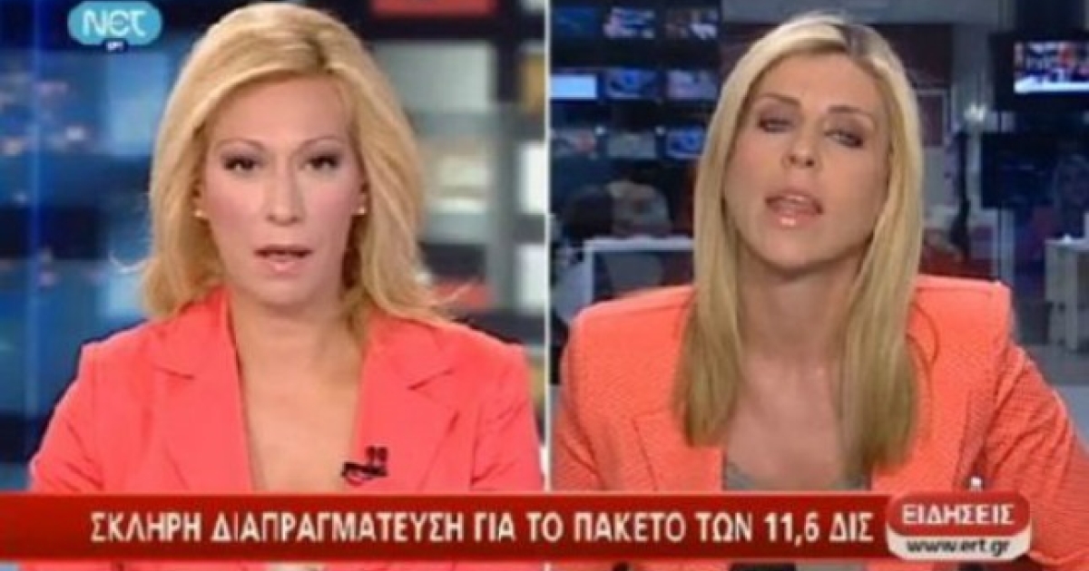 Η αμηχανία της κεντρικής παρουσιάστριας φάνηκε για κάποια δεύτερα στο βλέμμα της αλλά συνέχισε να παρουσιάζει το δελτίο.