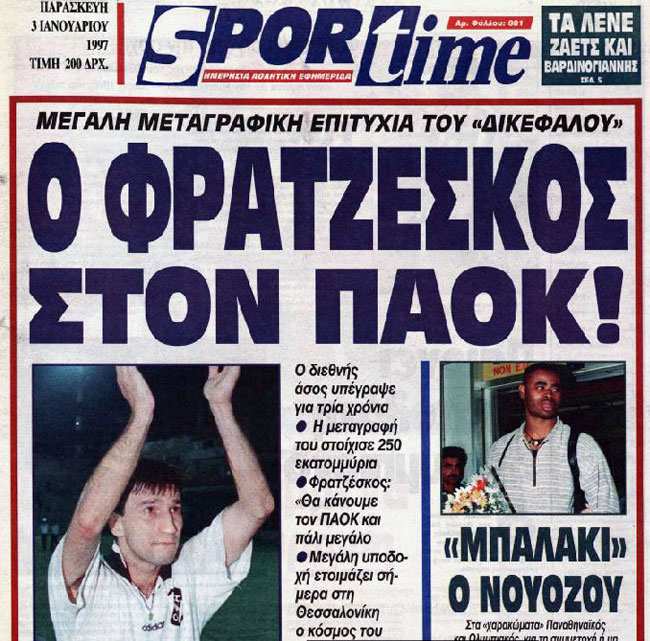Έτσι, τις πρώτες μέρες του 1997, ο μεγαλομέτοχος του ΠΑΟΚ καλεί στα γραφεία της «ΕΡΓΑΣ» στην Αθήνα τον Κώστα Φρατζέσκο. Νωρίτερα, ο αντιπρόεδρος Κώστας Ορφανός είχε συμφωνήσει με τον ΟΦΗ στο ποσό των 100.000.000 δραχμών και απέμενε το «ναι» του Έλληνα διεθνή μέσου.