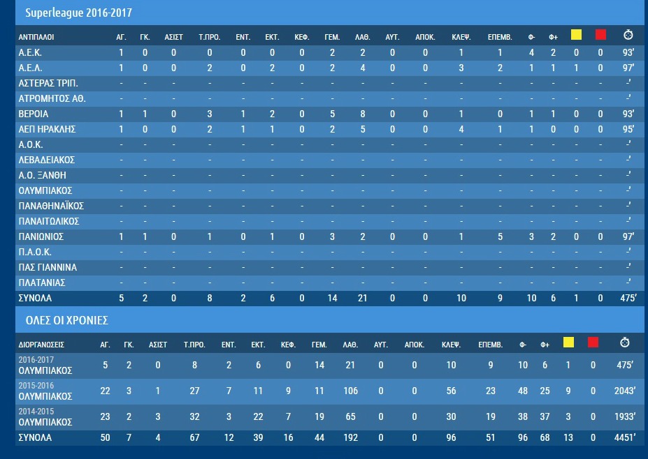Πιο κάτω στην φωτό δείτε την στατιστική του εικόνα στο φετινό πρωτάθλημα αλλά και την αναφορά στις προηγούμενες σεζόν: