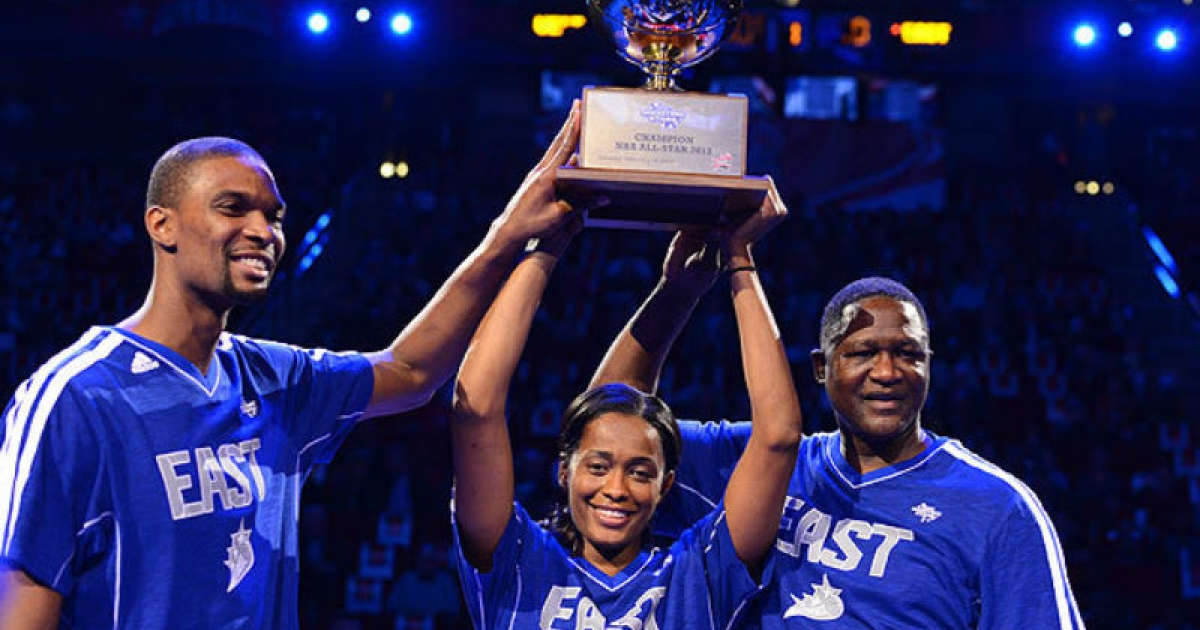 Σε ένα... repeat των τελικών του ΝΒΑ, η ομάδα των Χιτ επικράτησε στον τελικό εκείνης των Θάντερ και κατέκτησε τον διαγωνισμό Shooting Stars. Η ομάδα του Μπος είχε ακόμα τους Ντομινίκ Γουίλκινς και Σουίν Κας, ενώ στην ομάδα του Γουέστμπρουκ υπήρχαν οι Ρόμπερτ Χόρι και Μάγια Μουρ.