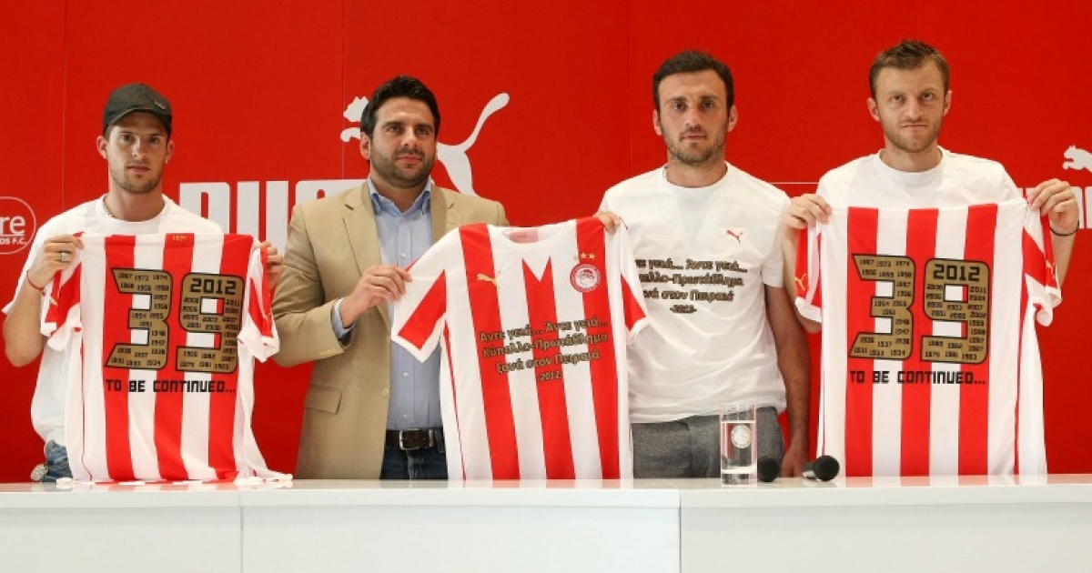 «Είμαι ευτυχισμένος που βρίσκομαι εδώ και εκπροσωπώ τον Ολυμπιακό σ’ αυτή την εκδήλωση. Ελπίζω του χρόνου τέτοια μέρα να είμαστε ξανά και οι τρεις μας εδώ και να παρουσιάζουμε τη νέα φανέλα, η οποία θα έχει ακόμα έναν τίτλο πάνω της…