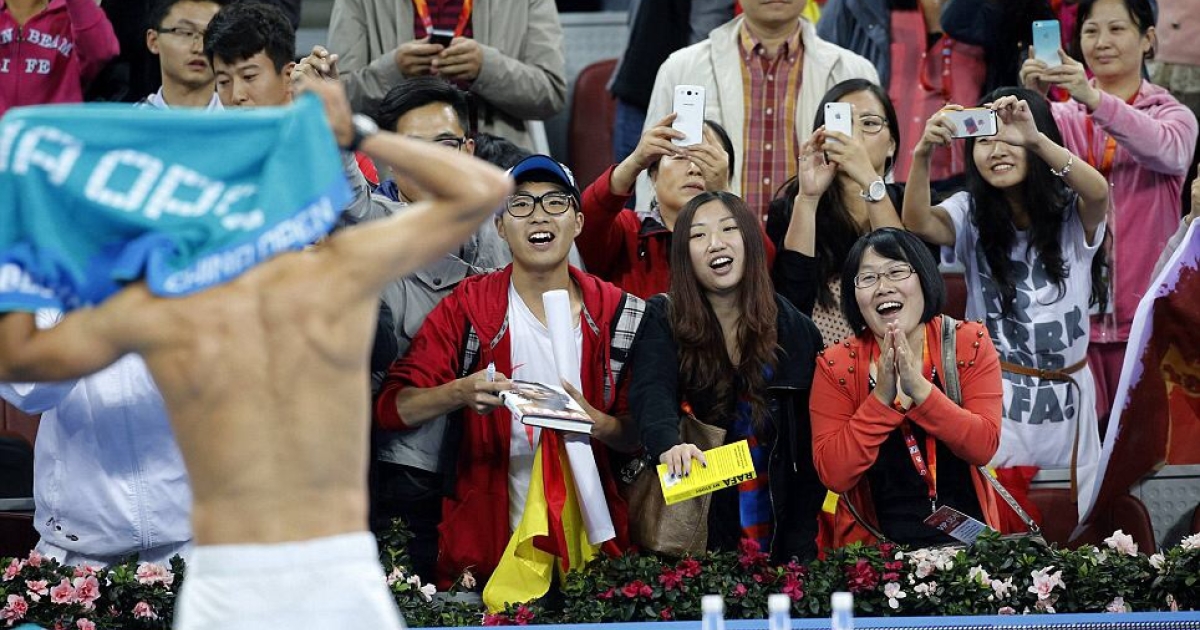 Όλα τα λεφτά, βέβαια, είναι η φωτογραφία της... πλάτης του Ράφα Ναδάλ, που τραβήχτηκε κατά τη διάρκεια του αγώνα με τον Γερμανό Φίλιπ Κολσράιμπερ στο China Open. Οι Κινέζες θαυμάζουν το σώμα του κορυφαίου τενίστα στον κόσμο και το απαθανατίζουν με... φανερό ενθουσιασμό!