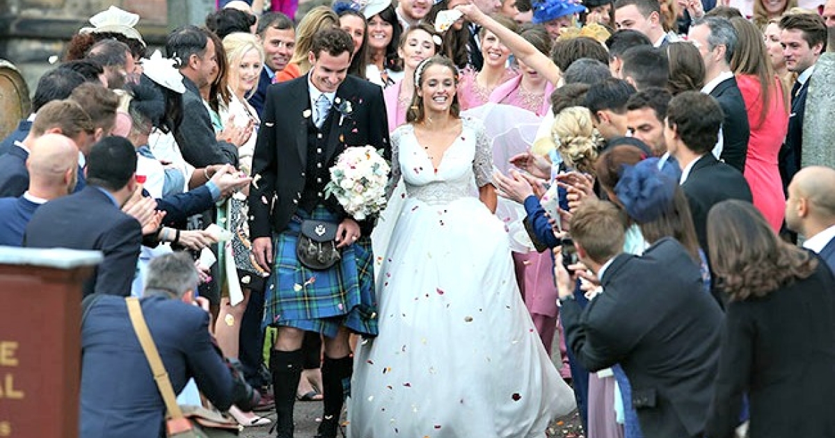 Τα σκαλιά της εκκλησίας πέρασε ο Άντι Μάρεϊ, που φόρεσε την παραδοσιακή σκωτσέζικη φούστα του και ενώθηκε με τα δεσμά του γάμου με την εκλεκτή της καρδιάς του.