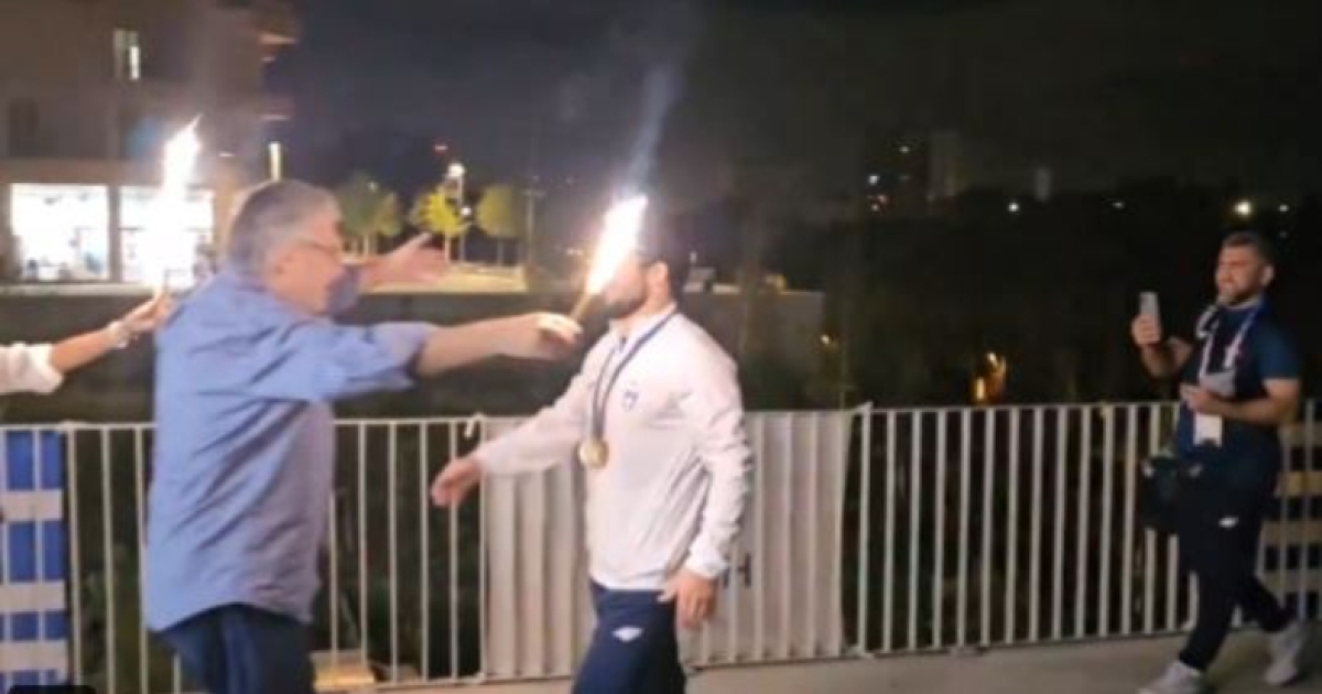 Η υποδοχή στον χάλκινο Ολυμπιονίκη Νταουρέν Κουρουγκλίεβ στο Αρχηγείο της Team Hellas παρά το προχωρημένο της ώρας, με πυρσούς και συγχαρητήρια από τον Αρχηγό Αποστολής Πέτρο Συναδινό. pic.twitter.com/UI7Lz799kw