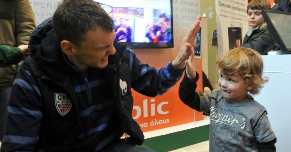 Το ρεπό στην Α1 έδωσε την ευκαιρία στην XPERIA, χορηγό εταιρία του Παναθηναϊκού, σε συνεργασία με τον Marketing Director της ΚΑΕ, Ηλία Κατσογιάννη, να διοργανώσει ένα event στο στο κατάστημα Public στο The Mall of Athens κι η παρουσία του Λιθουανού αστέρα θα δε μπορούσε να περάσει απαρατήρητη. Πέραν του κόσμου που γνώριζε για το γεγονός, δεν ήταν λίγοι εκείνοι που, μόλις το πληροφορήθηκαν, έσπευσαν απ' όλους τους ορόφους του εμπορικού κέντρου και δημιούργησαν το αδιαχώρητο. Ο «Σάρας» έφτασε στο χώρο στις 13:05, αποθεώθηκε, υπέγραψε αυτόγραφα και πόζαρε για φωτογραφίες κι έπειτα από περίπου 40 λεπτά αποχώρησε.