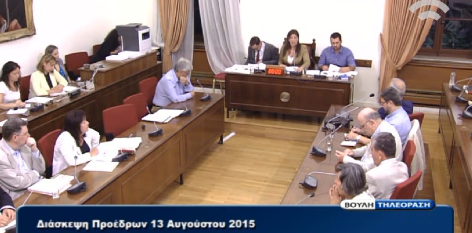 Η διάσκεψη ήταν το απαραίτητο surreal touch στην auteur προσέγγιση του σκηνοθέτη με συγκλονιστικά ερωτήματα να τίθενται ενώπιον των τηλεθεατών: πότε κατατέθηκε το νομοσχέδιο; Τρίτη 11 Αυγούστου στις 23.55΄ όπως υποστήριζε ο Σπύρος Σαγιάς και η Γενική Γραμματεία της Κυβέρνησης ή Τετάρτη 12 Αυγούστου στις 00.03΄ όπως υποστήριζε η Πρόεδρος της Βουλής; Κεφαλαιώδους σημασίας το ερώτημα, σε βαθμό που η Πρόεδρος ζήτησε και Έκθεση Εγχειρίσεως (όπως κάνει ο Ανακριτής για να γίνει κατανοητό) του νομοσχεδίου από τη ΓΓΚ στην αρμόδια υπηρεσία νομοθετικού έργου της Βουλής. Η διάσκεψη διήρκησε πάνω από τέσσερις ώρες, ξημέρωσε Πέμπτη και περίπου στις 02.30΄ ορίστηκε η συνεδρίαση των Επιτροπών για τις 9.30΄ της ίδιας μέρας. Και πότε θα οριστεί η Ολομέλεια; Πότε θα προλάβουν οι Βουλευτές να το διαβάσουν το μνημόνιο;