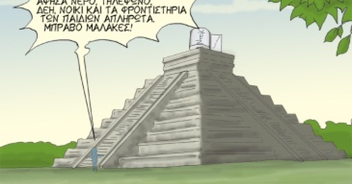 Μια ξεκαρδιστική γελοιογραφία ανακάλυψε το Plus στο διαδίκτυο με αφορμή την αποτυχία της προφητείας των Μάγιας για το τέλος του κόσμου.