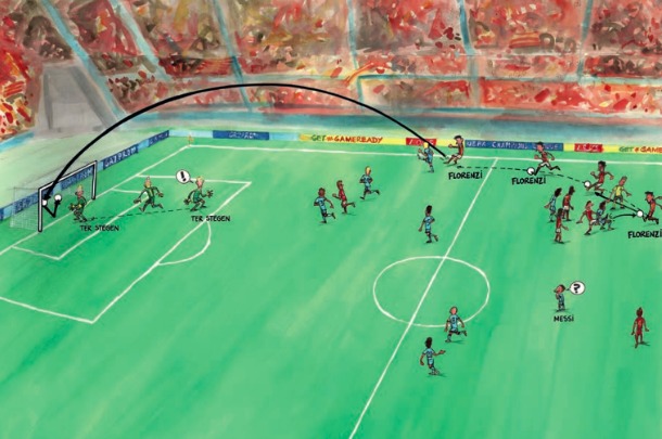«Είδα ότι ο τερματοφύλακας ήταν εκτός θέσης και είχα αρκετές επιλογές στη διάθεσή μου», λέει ο Φλορέντσι στο FourFourTwo. «Είπα στον εαυτό μου: θα το δοκιμάσω και αν δεν τα καταφέρω δεν χάθηκε και ο κόσμος». Το αντίθετο, καθώς ο Τερ Στέγκεν μάζεψε την μπάλα από τα δίχτυα του, με τον Ιταλό να σκοράρει από τα 50 μέτρα!
