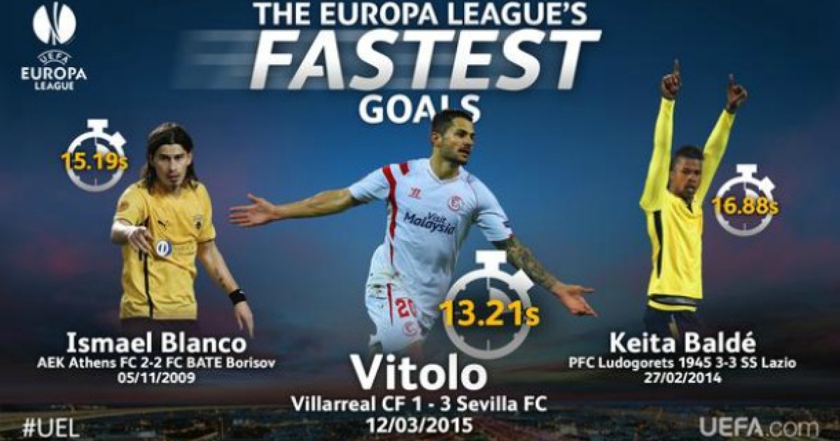 Γκολ από τα αποδυτήρια. Είναι από τα κλισέ στην ορολογία του ποδοσφαίρου, όμως ακόμα και αν ακούγεται υπερβολικό, είναι φορές που ισχύει. Γιατι έτσι είναι όταν δεν έχουν συμπληρωθεί ούτε 20 δευτερόλεπτα στο χρονόμετρο και ο φωτεινός πίνακας έχει γράψει γκολ χωρίς να προλάβει καν να τρέξει ιδρώτας. Και είναι ακόμα πιο σημαντικό και σπάνιο όταν αυτό συμβαίνει στο πλαίσιο ευρωπαϊκής διοράνωσης. Στη δεύτερη τη τάξει, στο Europa League είχαμε την Πέμπτη (12/03) μία από αυτές τις περιπτώσεις. Ο Βιτόλο της Σεβίλλης το έκανε αυτό και μάλιστα ήταν τόσο συνοπτικός στο να σκοράρει όχι μόνο όσο για να μπει στην πολύ κλειστή αυτή λίστα, αλλά και για να ανέβει στην πιο ψηλή θέση του βάθρου στην οποία βρισκόταν μέχρι τότε ο Ισμαέλ Μπλάνκο της ΑΕΚ. Πάμε να δούμε τα πιο γρήγορα γκολ στην ιστορία του θεσμού. Τα 5 από τα 6 έχουν σημειωθεί την περίοδο Φεβρουαρίου-Μαρτίου.