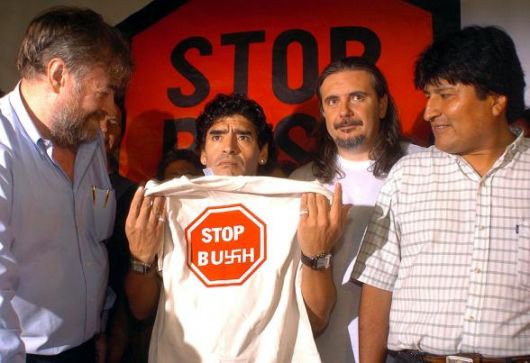 Όπως και κάθε μεγάλος ήρωας της στρογγυλής Θεάς, ο Μαραντόνα προσεγγίστηκε από πολιτικούς και συμφέροντα. Ήδη από το 1979, ένα χρόνο μετά το Μουντιάλ της Αργεντινής και την απόφαση του Μενότι να δώσει τη φανέλα με το 10 στον Κέμπες, ο πιτσιρικάς από το Μπουένος Άιρες οδήγησε τη χώρα του στην κατάκτηση του Παγκοσμίου Πρωταθλήματος Νέων και το καθεστώς άρχισε να του χαμογελάει προσποιητά. Δημιούργησε ψευδαισθήσεις σχέσεων με προέδρους και άλλα εξέχοντα πρόσωπα, τα οποία τον ξέχασαν μεμιάς όταν οι δαίμονες βγήκαν στο προσκήνιο. Η κουλτούρα της αριστεράς ταίριαζε περισσότερο στην εκρηκτική του προσωπικότητα και στον αυθορμητισμό του. Αποκάλεσε δημόσια δολοφόνο τον Τζορτζ Μπους, εναντιώθηκε στην πολιτική των ΗΠΑ και στον Πάπα. Χτύπησε tattoo τον Φιντέλ Κάστρο και τον Ερνέστο Γκεβάρα.