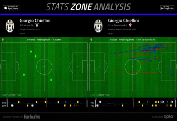 Το ξεκίνημα της σεζόν ήταν κάκιστο για την Γιουβέντους, όμως τα πράγματα έχουν βελτιωθεί εντυπωσιακά τον τελευταίο καιρό. Η επιλογή του Αλέγκρι να επιστρέψει στο σχήμα με τρεις κεντρικούς αμυντικούς, έχει φέρει τη σταθερότητα και σε αυτό έχουν βοηθήσει και οι εμφανίσεις του Κιελίνι. Στα παιχνίδια με Φιορεντίνα και Κάρπι βοήθησε πάρα πολύ επιθετικά, προσφέροντας παράλληλα και την καλύτερη κάλυψη στον Εβρά στα αριστερά και στον Πογκμπά στη μεσαία γραμμή.