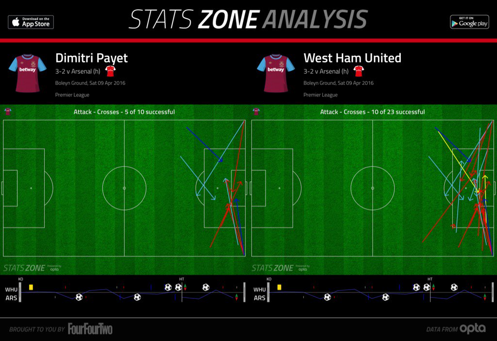 Ο Ντιμίτρι Παγιέ έκανε ακόμη μία πολύ καλή εμφάνιση, με ις σέντρες του να είναι… ξυράφι. Δεν ήταν, όμως, μόνος. Γενικότερα οι επιδόσεις της Γουέστ Χαμ στις σέντρες ήταν εντυπωσιακές. Οι παίκτες της Άρσεναλ απλά δεν έκαναν αρκετά, για να τους κρατήσουν μακριά από την περιοχή τους. Ο Μπίλιτς διάβασε σωστά το ματς, με τον Κάρολ να παίρνει θέση στην περιοχή και να περιμένει την μπάλα από τους συμπαίκτες του ψηλά. Είναι προβλήματα που ταλαιπωρούν τους κανονιέρηδες εδώ και μήνες και τα σφυριά κατάφεραν να τα εκμεταλλευτούν.