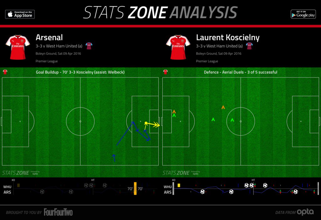 Όταν οι φιλοξενούμενοι πήραν προβάδισμα με 2-0 όλα έδειχναν να έχουν τελειώσει. Το γεγονός, όμως, ότι άφησαν το πόδι από το γκάζι και επέτρεψαν στους γηπεδούχους να παίξουν με σέντρες, τους έφερε σε δύσκολη θέση. Οι παίκτες του Βενγκέρ έκαναν μόνοι τους δύσκολη της ζωή τους. Οι σέντρες έφεραν την πίεση και τα σφυριά ξανά στη ζωή. Ο Κοσιελνί είχε τα πάνω του και τα κάτω του: σκόραρε ένα κρίσιμο γκολ, ενώ τα πήγε πολύ καλύτερα στον αέρα σε σχέση με τον Γκάμπριελ, που ήταν δίπλα του.