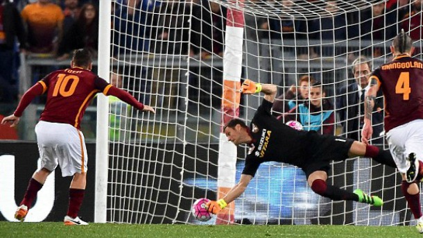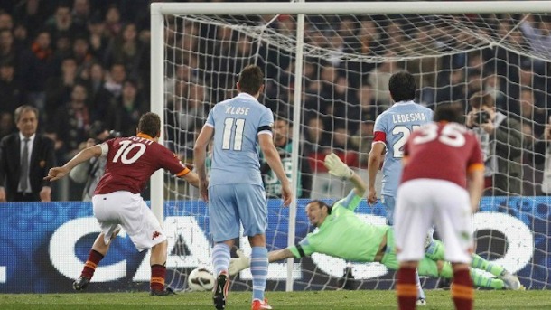 Λίγες μέρες αφού υπήρξε έκρηξη στον Τύπο για τη σκληρή κόντρα του Τότι με τον Λουτσιάνο Σπαλέτι και τις δηλώσεις του προπονητή, ο capitano έκανε το Olimpico ακόμα και να δακρύσει. Εχοντας μπει αλλαγή στο 86’ ισοφάρισε σε 2-2 με την πρώτη του επαφή με την μπάλα, την οποία πήρε στα χέρια του για να εκτελέσει 4 λεπτά αργότερα ένα ακόμα πέναλτι που έκρινε κάτι σημαντικό. Ο Τότι νίκησε τον Παντέλι και έγραψε το τελικό 3-2 χαρίζοντας στην Ρόμα ουσιαστικά την 3η θέση που οδηγεί στο Champions League. Για τον 39χρονο αυτό ήταν το 69ο γκολ από τη βούλα από 86 εκτελέσεις, με το οποίο άφησε πίσω τον Ρομπέρτο Μπάτζιο. Πάμε να ρίξουμε μια ματιά σε κάποια από τα πέναλτι του θρύλου της Ρόμα…