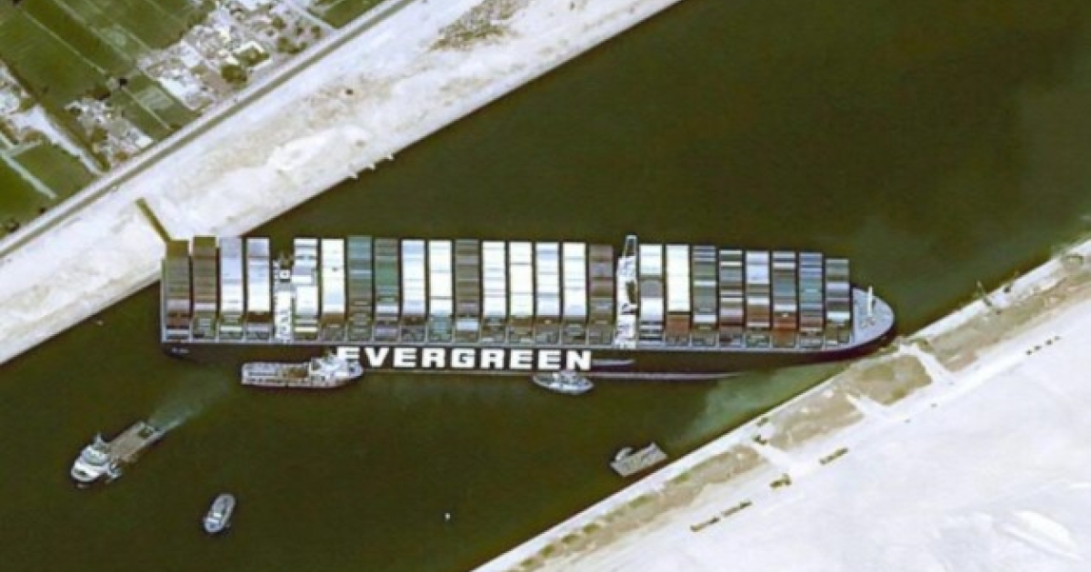 Θυμίζουμε οτι το ταξίδι του άρχισε στις 8 Μαρτίου όμως στις 23 του ίδιου μήνα, σταμάτησε με το μπλοκάρισμά του στην διώρυγα που εξυπηρετεί το 10% του παγκόσμιου εμπoριου λόγω ενός λάθος χειρισμού που είχε αποτέλεσμα να κολλήσει 3,7 μίλια βόρεια της νότιας εισόδου.