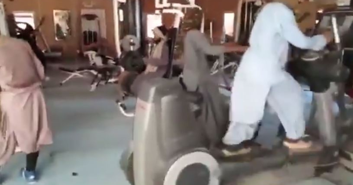 Σε ένα από τα βίντεο οι Ταλιμπάν βρίσκονται στο γυμναστήριο του προεδρικού μεγάρου και δοκιμάζουν τα όργανα, με τον δικό τους τρόπο. Άλλος παλεύει με τις τροχαλίες, άλλος με τα βάρη ενώ ένας τρίτος κάνει ελλειπτικό ανάποδα...