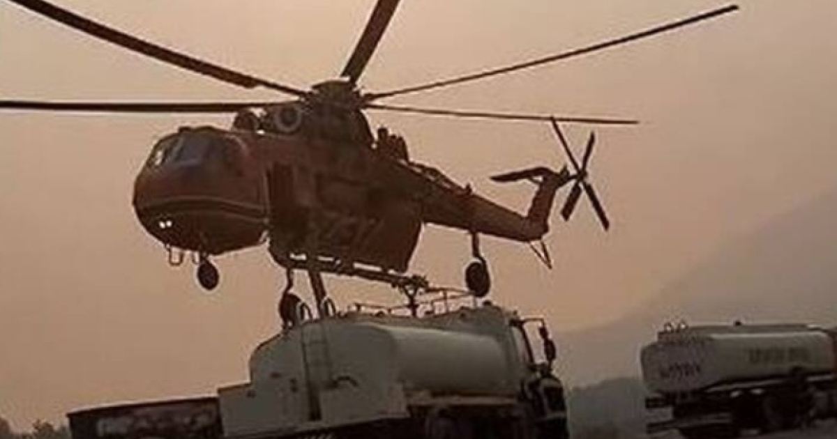 Τα ελικόπτερα δεν πάνε στη θάλασσα ή σε κάποια λίμνη, αλλά εφοδιάζονται στον δρόμο από υδροφόρες.