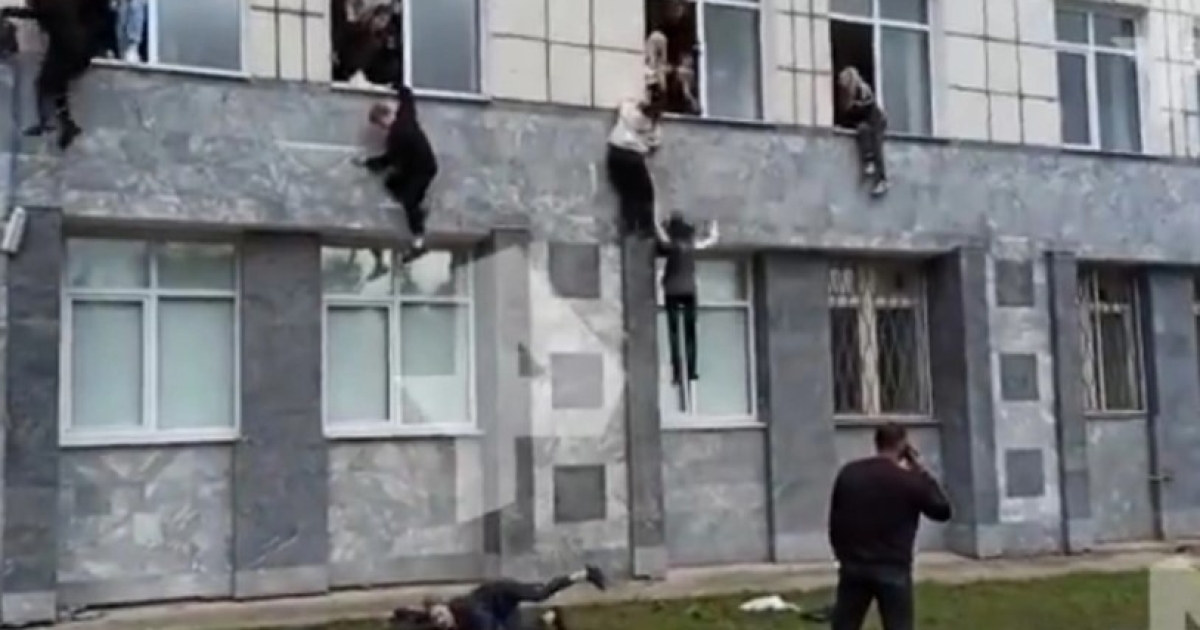 another angle of the same building at Perm State University; students jumping out of windows. (video from @bazabazon) pic.twitter.com/AvLm1OFg44