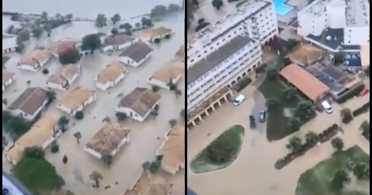 Σε αυτό φαίνεται μία ολόκληρη τουριστική περιοχή με μεγάλα ξενοδοχεία να έχει πνιγεί κυριολεκτικά στο νερό.