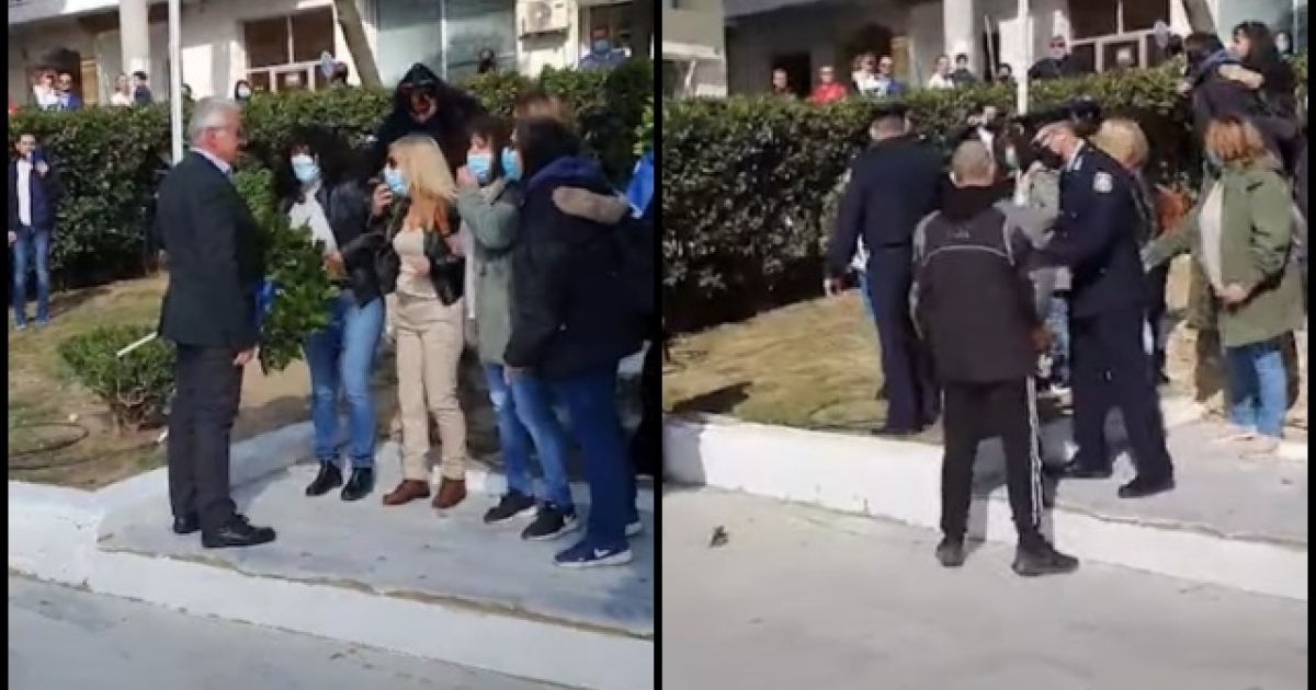 Μάλιστα, εκείνη την ώρα ο κόσμος που βρισκόταν άρχισε να αποδοκιμάζει, ενώ στο video του 902.gr, φαίνεται ένας αστυνομικός να τον τραβάει από το σημείο, για να μην ξεφύγει η κατάσταση.