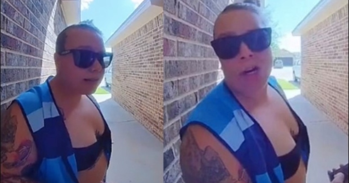 Στο βίντεο που «ανέβασε» η Jessica Huseman, που περίμενε το πακέτο, η οδηγός ντελίβερι, φαίνεται να πλησιάζει την πόρτα της και να αρχίζει στη συνέχεια να μιλάει στην κάμερα.