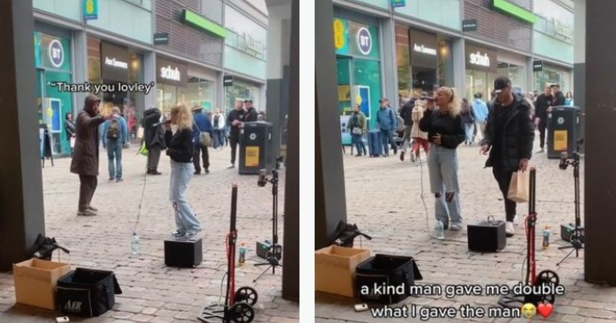 Η νεαρή κοπέλα που τραγουδάει στον δρόμο για να μαζέψει χρήματα, βρισκόταν σε έναν πεζόδρομο του Μάντσεστερ και ερμήνευε ένα κομμάτι, όταν είδε δίπλα της έναν άστεγο να ψάχνει στα σκουπίδια για φαγητό και να πιάνει κάτι πεταμένες κοτομπουκιές.