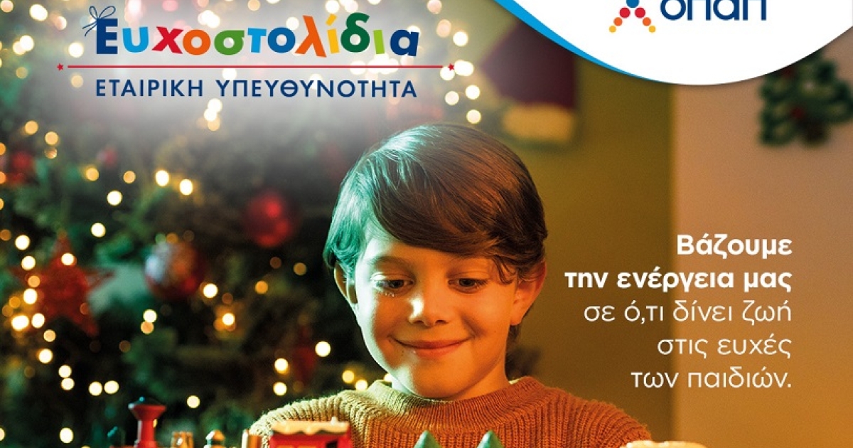 Όλοι μαζί, για ακόμη μια χρονιά, ενώνουμε διαδικτυακά τις δυνάμεις μας και εκπληρώνουμε τις ευχές χιλιάδων παιδιών που έχουν ανάγκη, μέσα από τα Ευχοστολίδια. Η πρωτοβουλία του ΟΠΑΠ εφέτος έχει στόχο να κάνει πραγματικότητα όλες τις ευχές των παιδιών από τους οργανισμούς «Κιβωτός του Κόσμου» και «Το Χαμόγελο του Παιδιού».