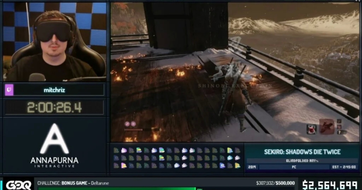 Είχε, δε, κάνει τέτοια προπόνηση που κάποια boss fights τα ολοκλήρωσε χωρίς καν να τον αγγίξουν οι αντίπαλοι. Όπως ήταν λογικό, η παρουσίαση αυτή ξεχώρισε και έγινε γρήγορα viral, με τους όρους “Sekiro” και “blindfolded” να γίνονται trending topics στο Twitter σε ΗΠΑ και Μ. Βρετανία μέσα σε ελάχιστα λεπτά.