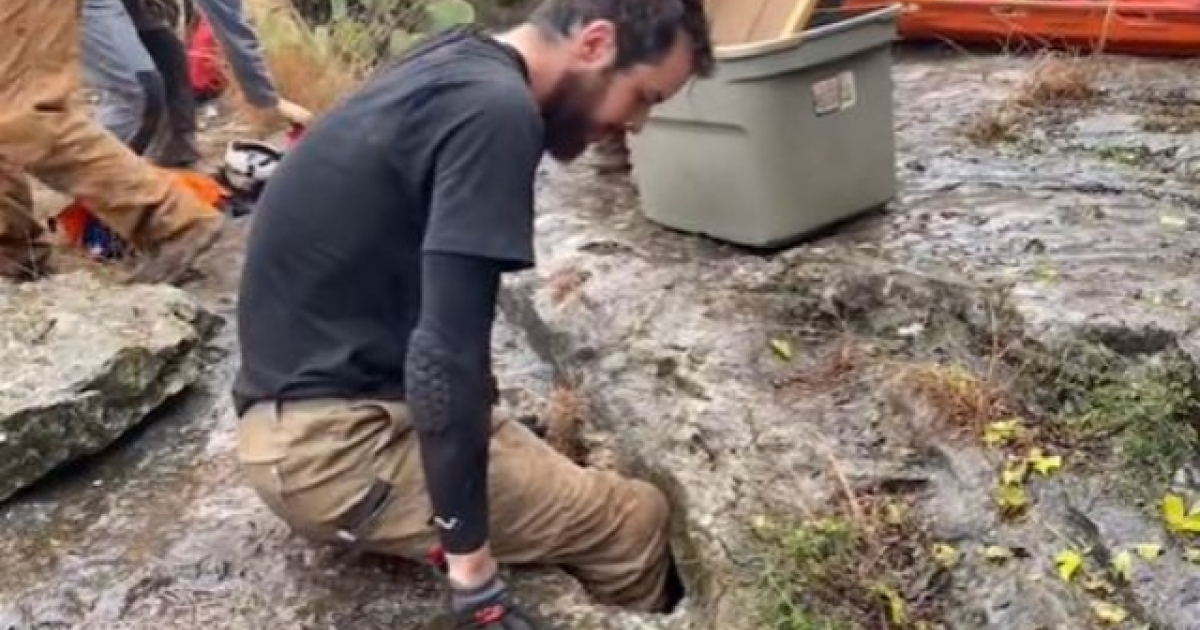 Ο εν λόγω σπηλαιολόγος καταφέρνει να περάσει το σώμα του σε μια στενή τρύπα και στη συνέχεια βάζει μέσα και το κεφάλι του. Το άνοιγμα της τρύπας είναι τόσο μικρό που δεν χωράει καν μια μπάλα ποδοσφαίρου πόσο μάλλον ένα ανθρώπινο σώμα. Ωστόσο, ο έμπειρος σπηλαιολόγος τα κατάφερε.