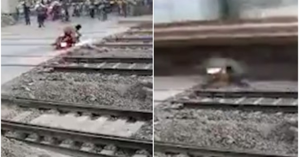 Συγκεκριμένα ένας οδηγός μηχανής προσπαθούσε να περάσει μια διάβαση σε γραμμές του τρένου στην Βομβάη, ωστόσο εκείνη την στιγμή κατέφθανε ο συρμός.