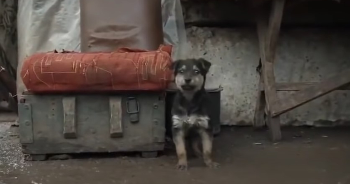 Τις πρώτες μέρες της εισβολής των Ρώσων, το κουταβάκι αυτό, εντοπίστηκε να γυρίζει μόνο του μέσα στο κρύο, στην περιοχή του Ντόνμπας.
