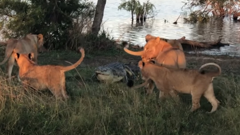 Μία ασυνήθιστη μάχη ανάμεσα σε ένα κροκόδειλο και πέντε λιοντάρια, καταγράφηκε στο πάρκο Κρούγκερ της Νοτίου Αφρικής πριν από περίπου ένα χρόνο.