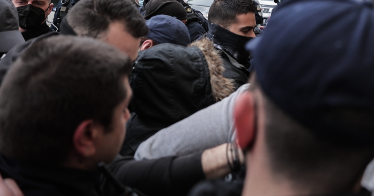 Η στιγμή που η Ρούλα Πισπιρίγκου έφτασε από στην Ευελπίδων από την ΓΑΔΑ.