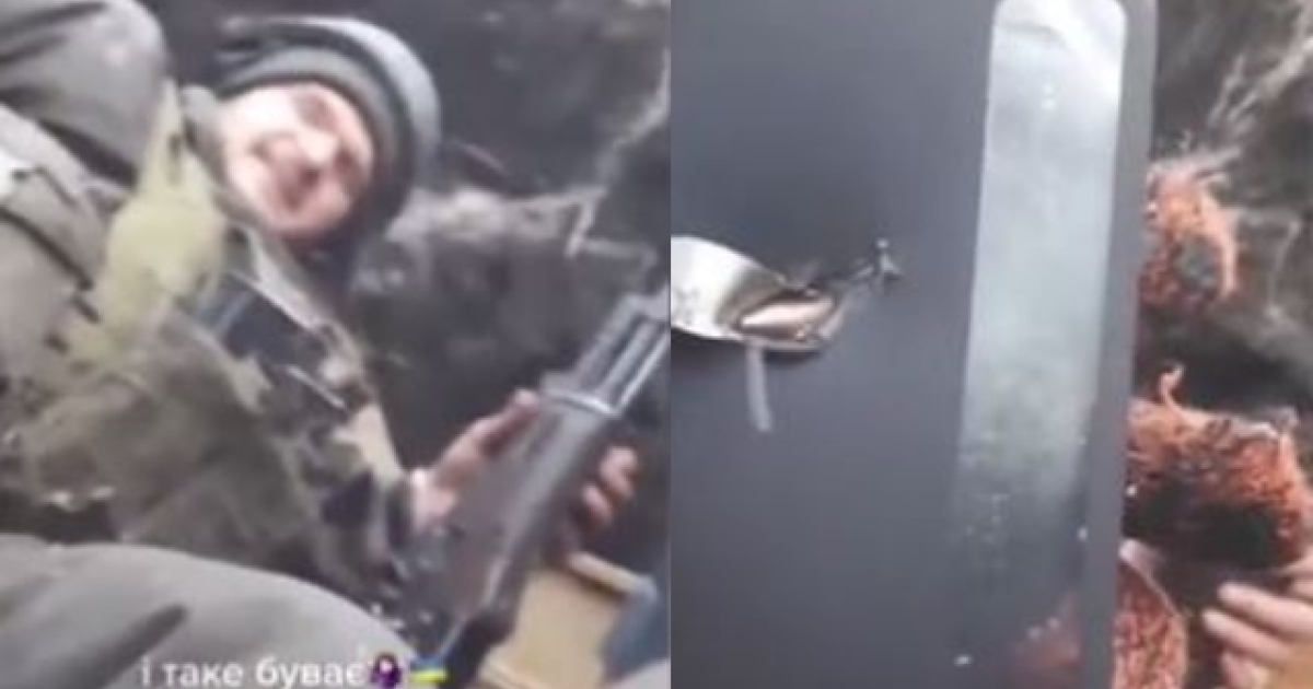 Στο βίντεο που κυκλοφορεί φαίνεται ο στρατιώτης να χαμογελάει με ικανοποίηση την ώρα που βγάζει από την τσέπη του το κινητό τηλέφωνο και το δείχνει σε έναν από τους συντρόφους του.