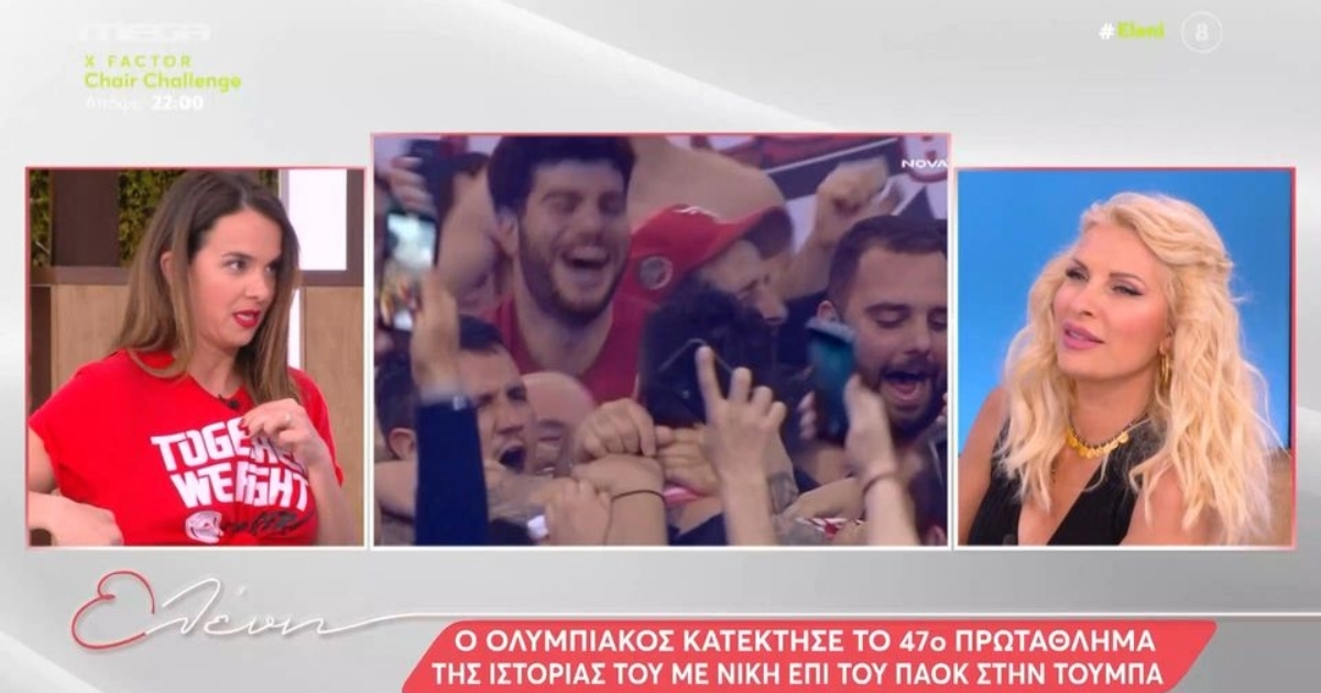 Κάτι το πρωτάθλημα στο ποδόσφαιρο και κάτι η πρόκριση της μπασκετικής ομάδας στο Final Four, ανάγκασαν την γνωστή παρουσιάστρια να δώσει πάσα στους συνεργάτες της με τον Δημήτρη Ουγγαρέζο να βγάζει το καπέλο στους «ερυθρόλευκους» παρά το γεγονός οτι είναι Παναθηναϊκό.