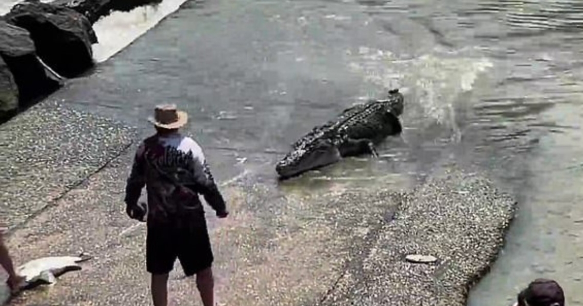 Σε ένα ποτάμι της περιοχής λοιπόν μία οικογένεια ψάρευε, μόνο που στα νερά αυτά ήταν και ένας κροκόδειλος που στόχευε μία γιγαντόπερκα μήκους ενός μέτρου.