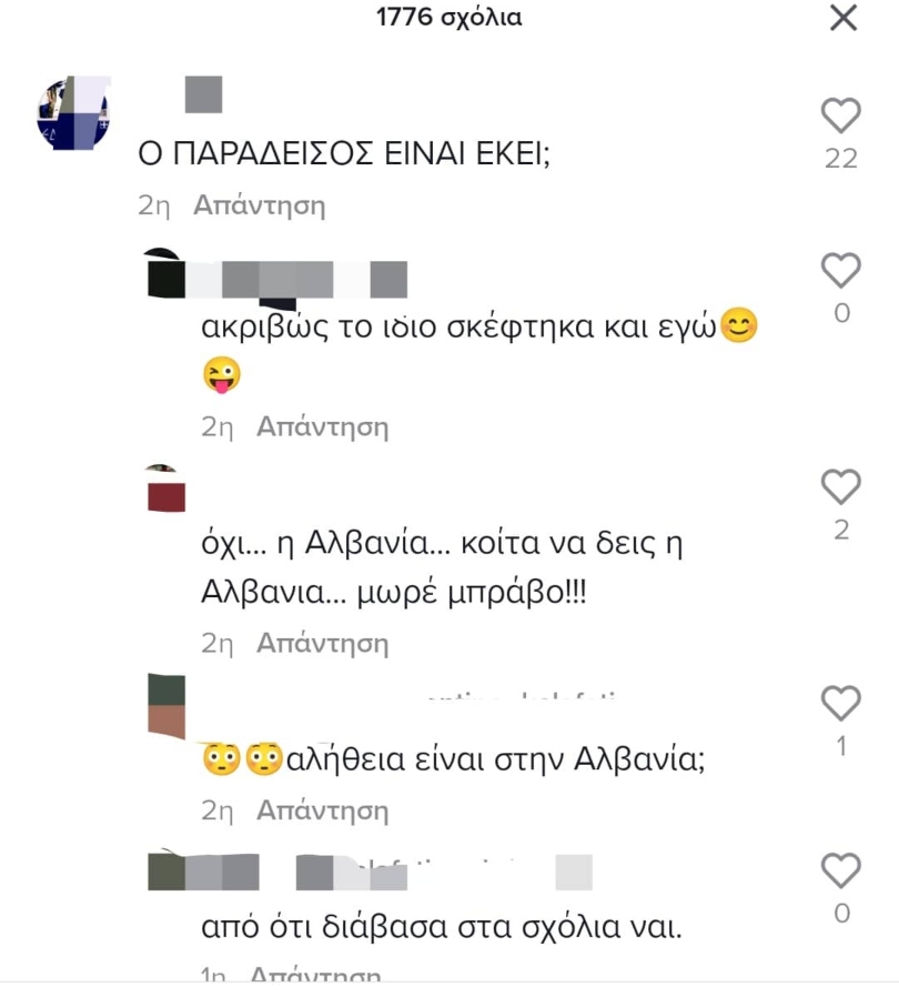 Πάντως σε βίντεο που ανέβηκε πρόσφατα στην πλατφόρμα του Tik Tok και το «σέρβιρε» ο αλγόριθμος στο ελληνικό κοινό, είδαμε δεκάδες σχόλα έκπληκτων Ελλήνων χρηστών που δεν μπορούσαν να πιστέψουν ότι αυτό το μέρος βρίσκεται «κρυμμένο» στην Αλβανία και όχι σε κάποια χώρα της Καραϊβικής.