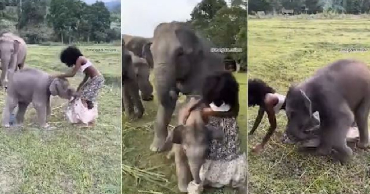 Ελεφαντάκι στην Ταϊλάνδη αποδείχθηκε ζωηρό και προκάλεσε ένα απρόοπτο «ατύχημα» σε διάσημο μοντέλο (vid)