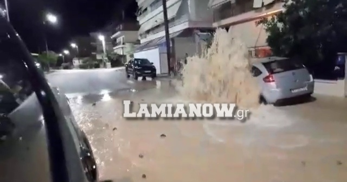 Σύμφωνα με το lamianow.gr, λίγο μετά τις 4.00 τα ξημερώματα, ο αγωγός που βρίσκεται επί της οδού Καβάφη «έσκασε» με αποτέλεσμα ένας τεράστιος πίδακας νερού να δημιουργήσει ένα μεγάλο συντριβάνι στο σημείο και να πλημμυρίσει την οδό. Μεγάλες ζημιές προκλήθηκαν και στο Ι.Χ το βλέπετε στις εικόνες.