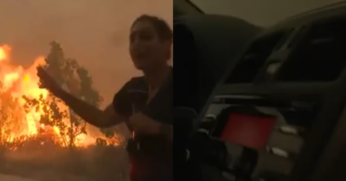 Η δημοσιογράφος του Open σε κάποια στιγμή ένιωσε να περικυκλώνεται από τη φωτιά μέσα στο ομιχλώδες τοπίο από τον πυκνό μαύρο καπνό και είπε στον κάμεραμαν της να φύγουν. Ένα αυτοκίνητο σταμάτησε να τους πάρει, ίσως να ήταν περαστικός που απομακρύνθηκε, ίσως και να του συνεργείου της και εσπευσμένα μπήκαν μέσα να απομακρυνθούν.