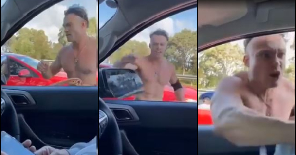 Ο εξαγριωμένος Αυστραλός εμφανίστηκε γυμνός από τη μέση και πάνω σε έξαλλη κατάσταση να φωνάζει σε ένα οδηγό και να του χτυπάει με ένα μπούμερανγκ το παρμπρίζ από την πλευρά του συνοδηγού και τον πλαϊνό καθρέφτη.