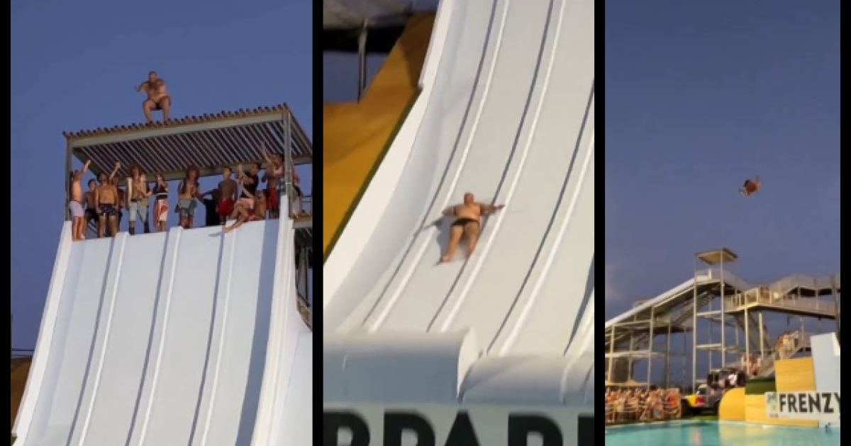 Ένας άνδρας στη Γαλλία κατάφερε να γίνει viral χάρη σε ένα άλμα «θανάτου» που έκανε από νεροτσουλήθρα. Ο εύσωμος άνδρας ανέβηκε πάνω στο υπόστεγο και με ένα άλμα πήδηξε στη νεροτσουλήθρα.