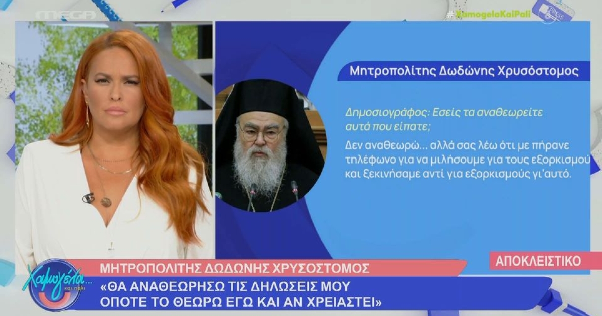 Στο ερώτημα της δημοσιογράφου εάν τελικά αναθεωρεί ή όχι, η απάντηση ήταν ξεκάθαρη: «Δεν αναθεωρώ… αλλά σας λέω ότι με πήρανε τηλέφωνο για να μιλήσουμε για τους εξορκισμούς και ξεκινήσαμε αντί για εξορκισμούς γι’ αυτό».