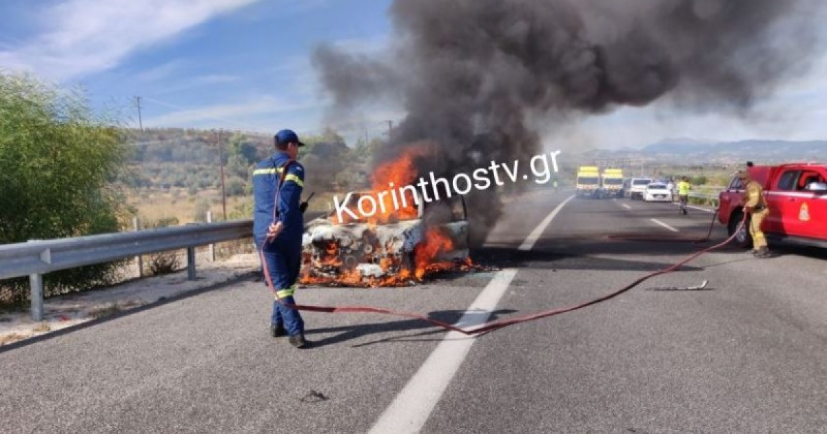 Σύμφωνα με το Korinthostv, ένα ταξί με 3 επιβαίνοντες τυλίχθηκε στις φλόγες στο 82ο χλμ της Εθνικής Οδού Κορίνθου-Πατρών, στο ύψος της Αρχαίας Κορίνθου. Ο οδηγός του ταξί έκανε δεξιά και στάθμευσε στη ΛΕΑ, με σκοπό να προλάβει να κατέβει ο ίδιος αλλά και οι επιβάτες.