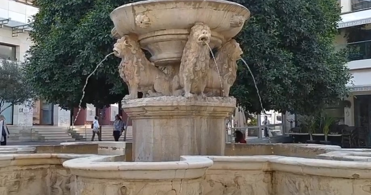 Ο νεαρός, όπως μπορείτε να δείτε στην φωτογραφία του Βαγγέλη Χριστοδουλάκη, κάθισε αμέριμνος στο παγκάκι μπροστά από το εμβληματικό για την πόλη συντριβάνι των Λιονταριών.